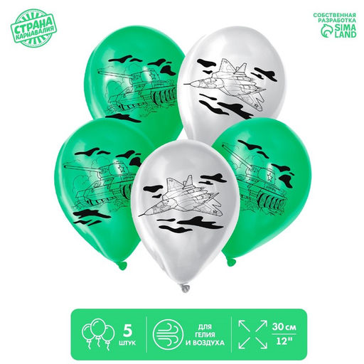 Цена за 2 шт. Воздушные шары латексные 12" Военная техника, 5 шт.