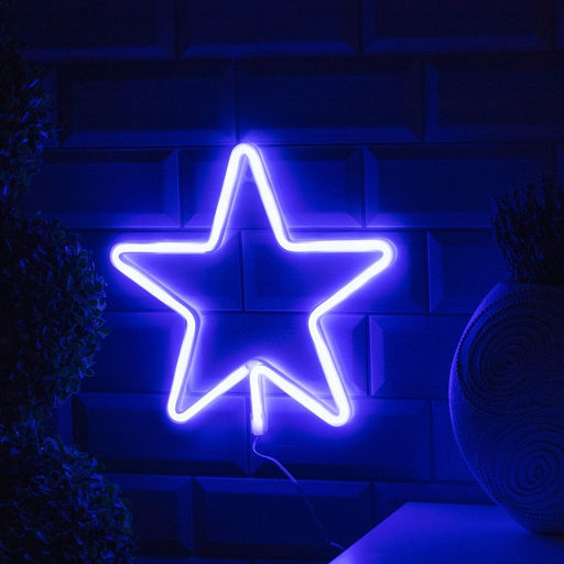 Неоновая вывеска Звезда 28?28 см, батарейки ААх3 (не в комплекте), USB, свечение голубое
