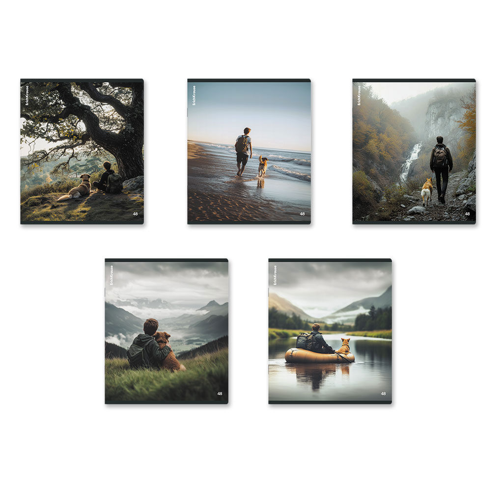 АКЦИЯ Цена за 5 шт. Тетрадь общая ученическая ErichKrause Friends, 48 листов, клетка, глянцевая ламинация_MIX-PACK