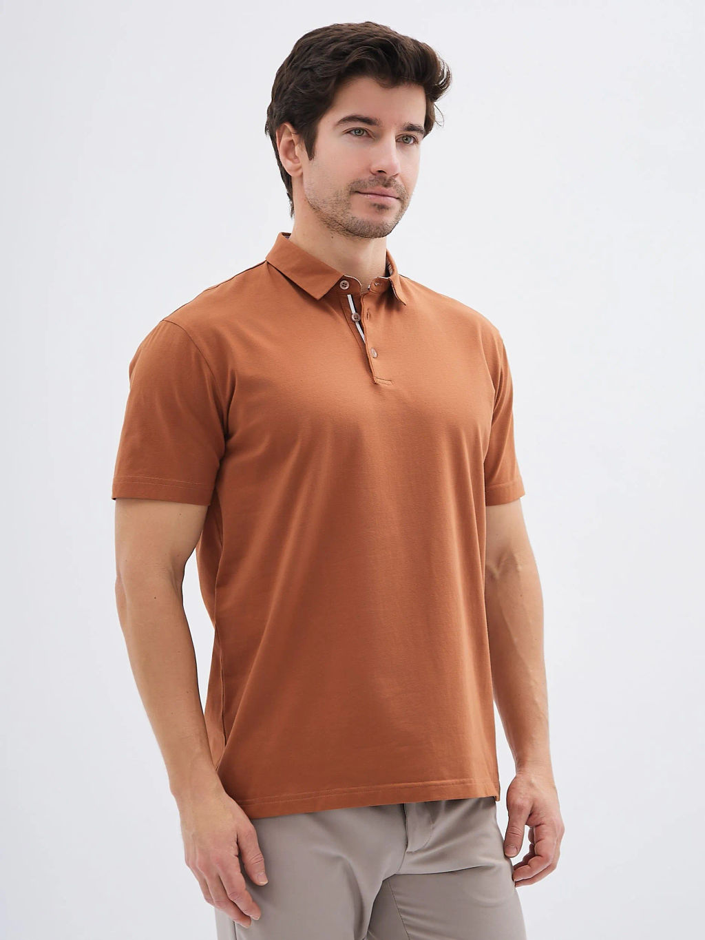 Джемпер мужской с воротником поло короткий рукав GREG G144-KO-HJ-70138-1246T (терракот)