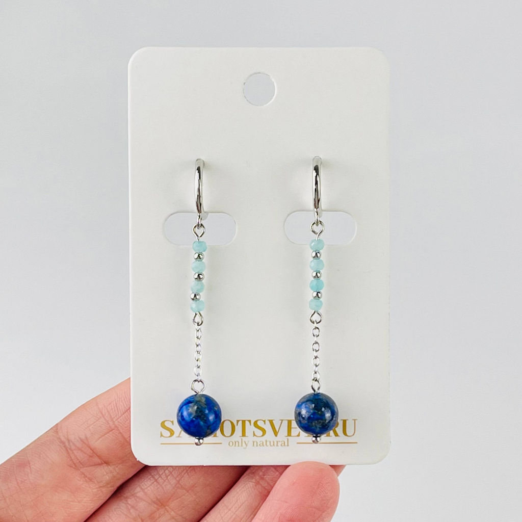 Серьги длинные из Лазурита и Амазонита