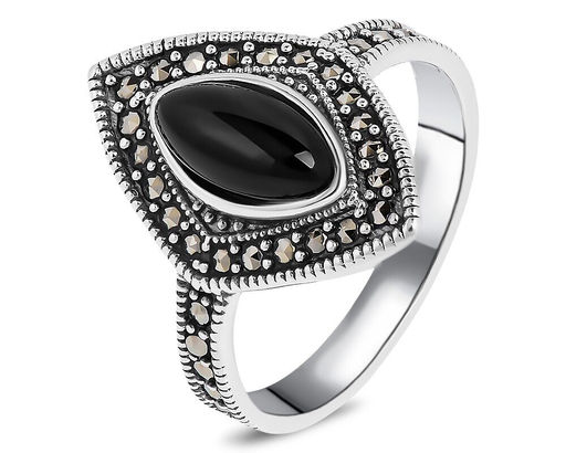 Кольцо, оникс , марказит, MR-M-4
