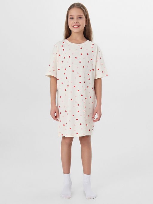 Сорочка ночная для девочек бежевая с принтом в сердечко