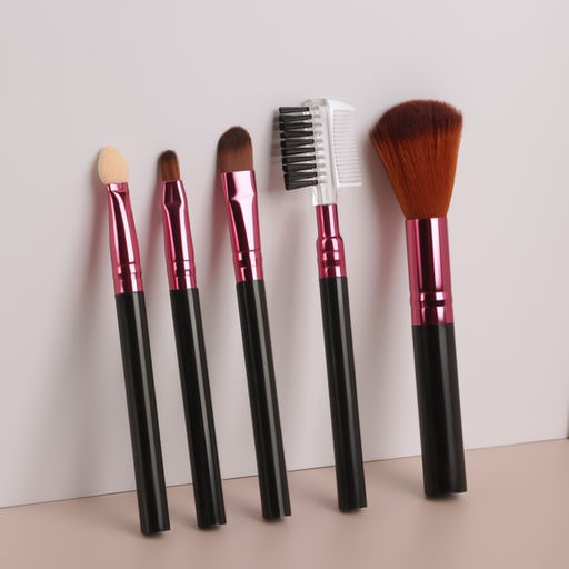 Набор кистей для макияжа, 5 предметов, цвет чёрный/малиновый