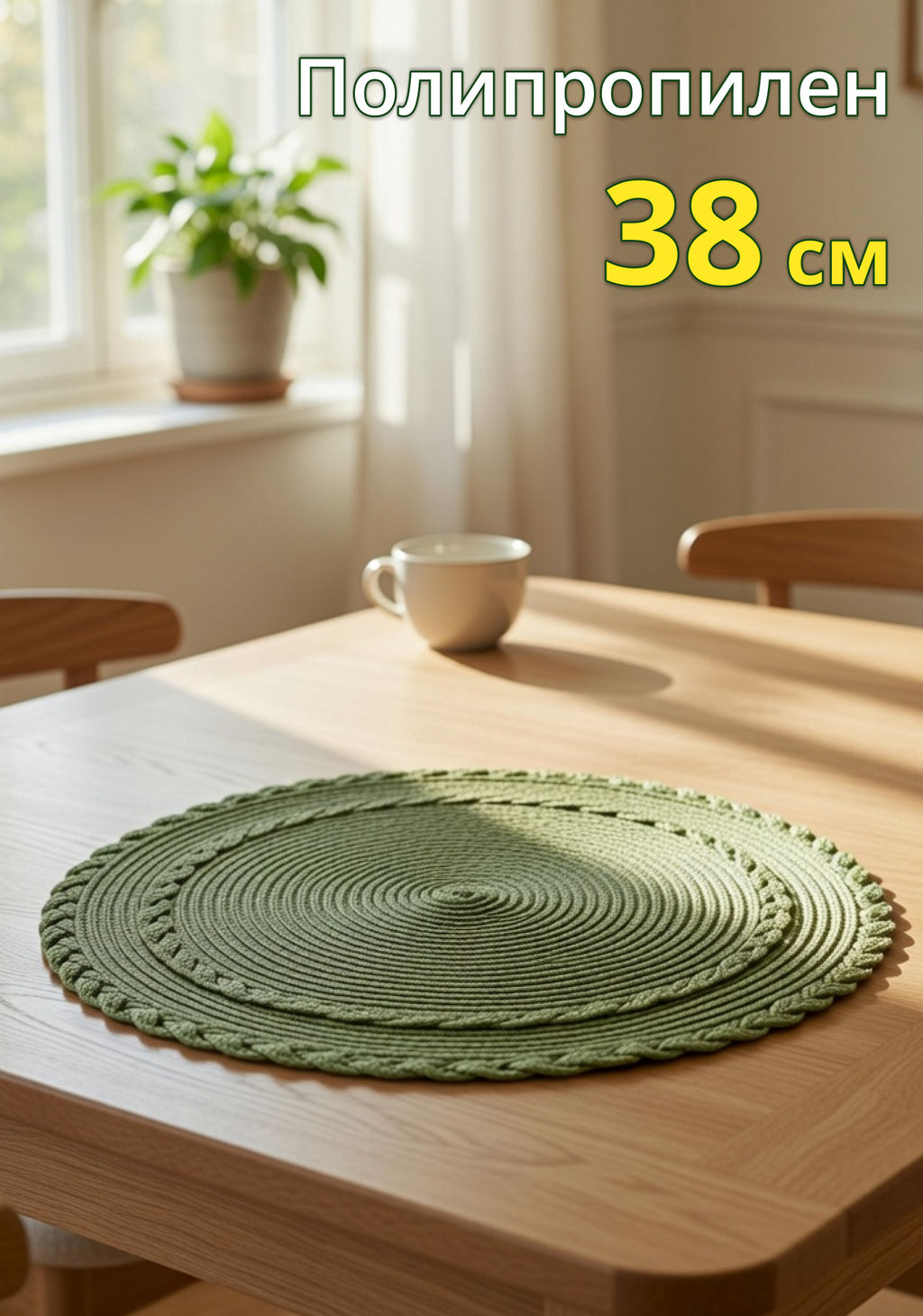 Салфетка под приборы, 38 см, полипропилен, круглая, зеленая, Косы, Matera
