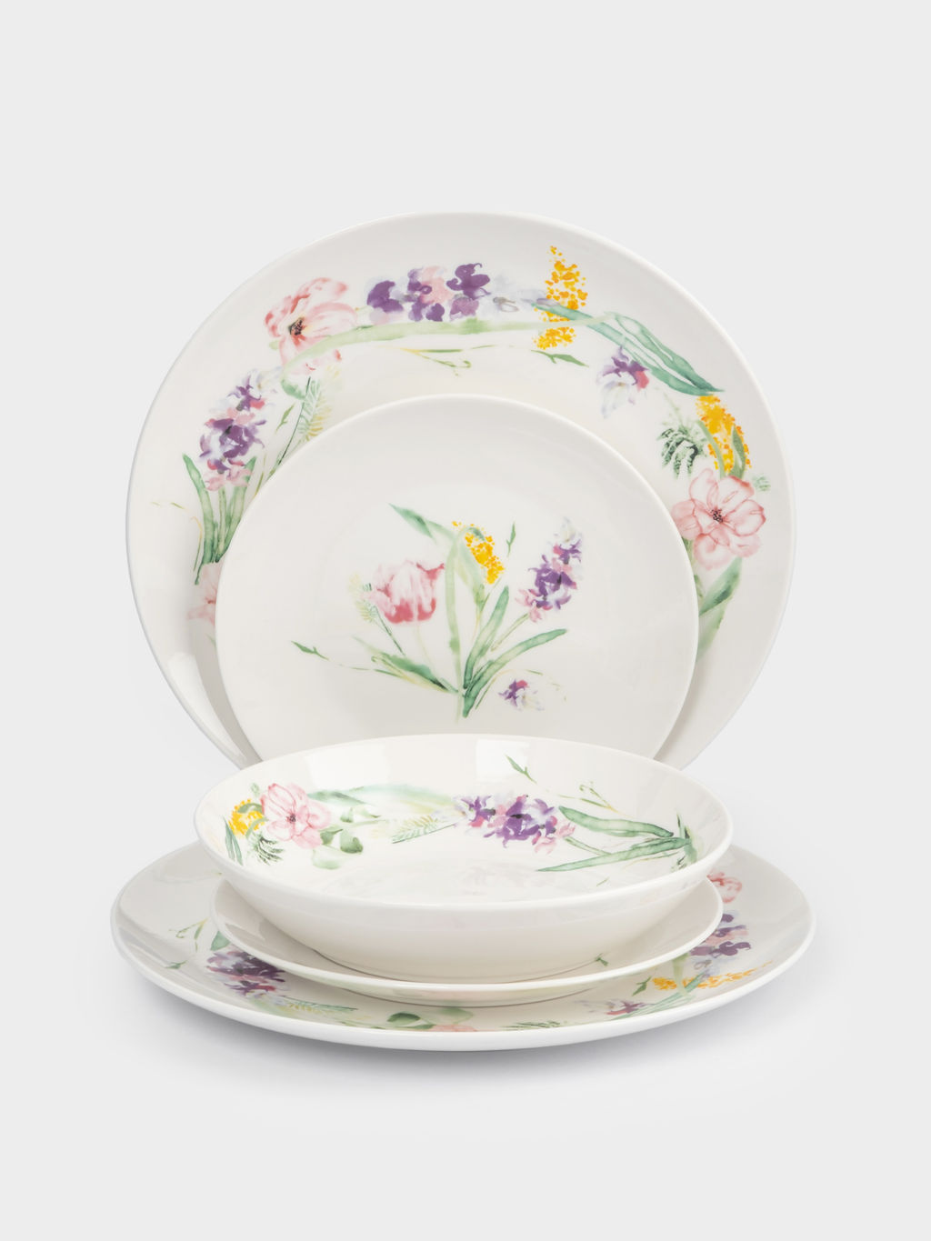 Сервиз обеденный, 6 перс, 18 пр, фарфор P, белый, Акварельные цветы, Bouquet