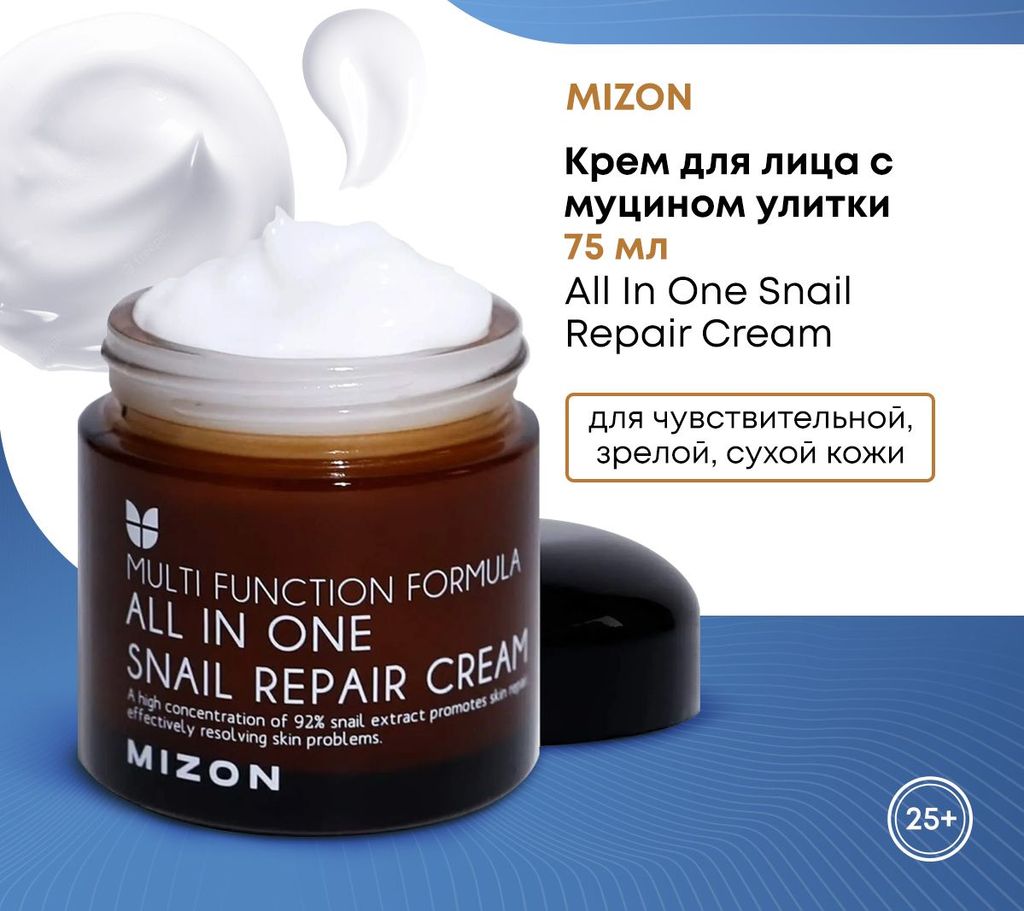 MIZON Крем для лица с муцином улитки 75мл All In One Snail Repair Сream
