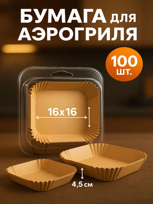 Бумага универсальная FRITTA (для фритюра, аэрогриля, выпечки) квадрат,16*16*4,5 см (100 шт) 111265
