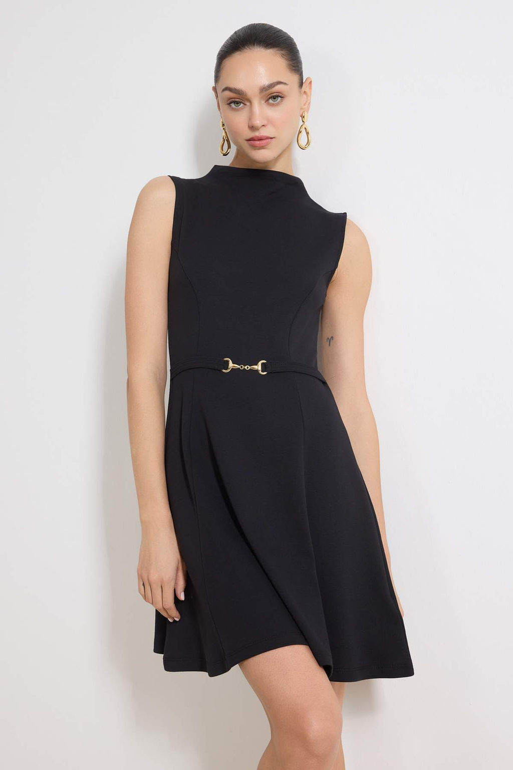 Siyah Belden Ac?lan Dik Yaka Kolsuz Aksesuar Detayl? Mini Interlok Orme Elbise TWOSS26EL00042