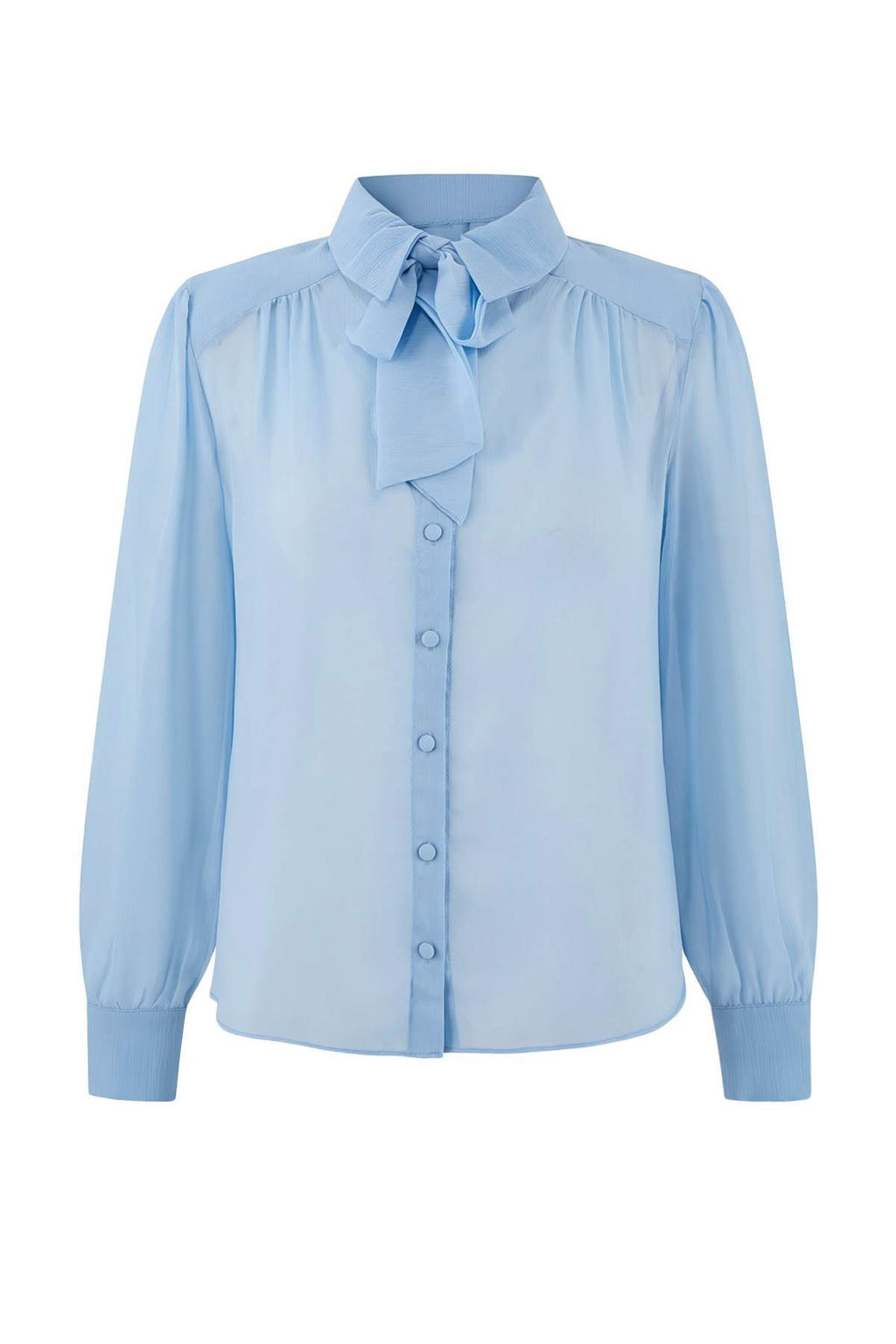 Mavi Vatka ve Fular Detayl? Transparan S?k Dokuma Gomlek TWOSS26GO00067