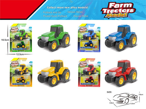 Металл. модель 5,2*3,8см "Трактор" (879-003B) усиленный инерц. механизм, 4цв. в ассорт., в блистере 16,5*12,5см