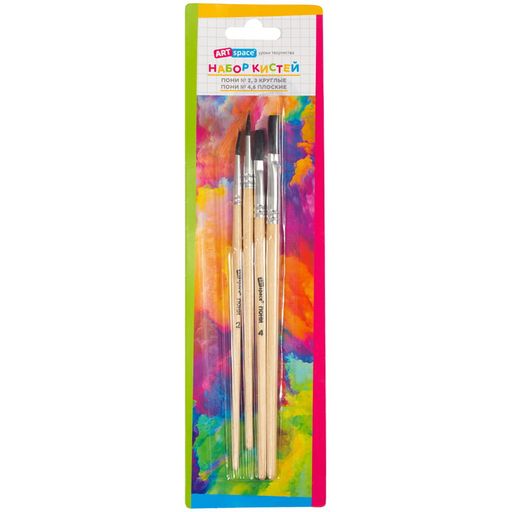 Набор кистей ArtSpace 4шт. Пони №2\3 круглые, №4\6 плоские (SB4_20382)