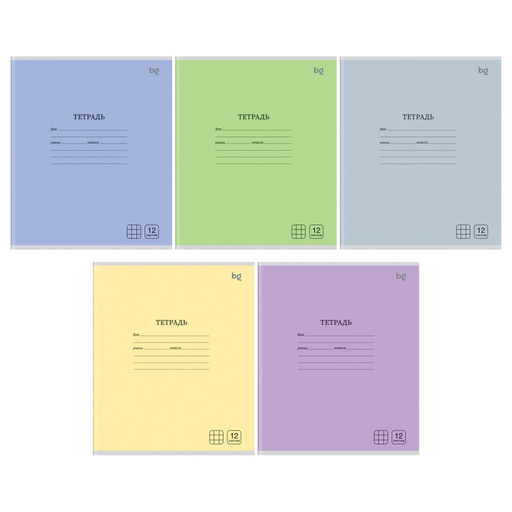Тетрадь 12л. BG клетка "Однотонная. Микс" (Т5ск12 63370) обложка - мелованный картон