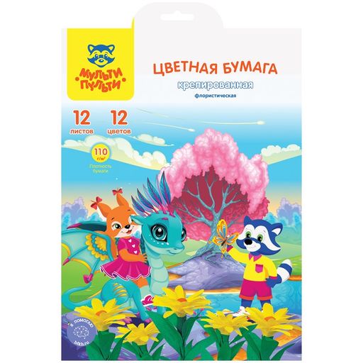 Бумага крепированная флористическая Мульти-Пульти А4 12л. 12цв. (Ббс8_44857) 110г/м2, в пакете