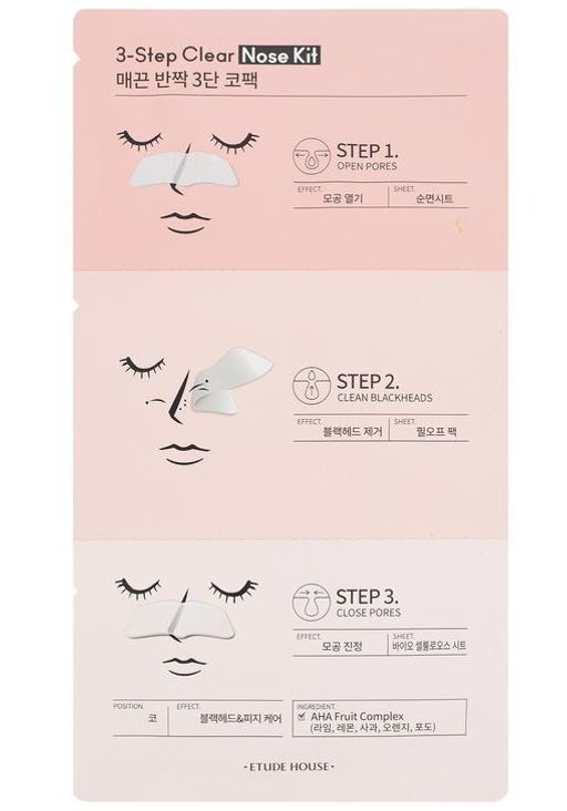 1УП ETUDE HOUSE 3-Step Clear Nose Kit Патчи для носа