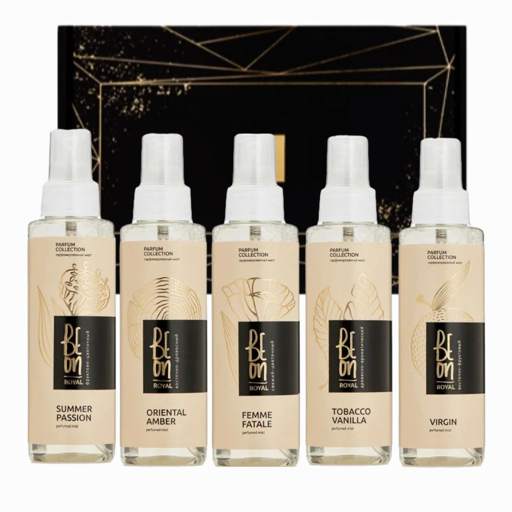 BeOn Подарочный набор из 5 мистов для тела №17 / Royal Oriental Amber, Tobacco Vanila, Summer Passion, Virgin, Femme Fatale, 105 мл x 5