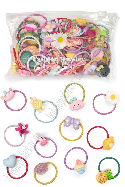 Резинки для волос в косметичке 3 см (50 шт) SF-7816, ассорти №2