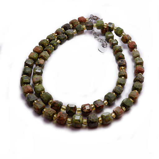 Бусы из граненного камня Унакит яшма 4мм 45см