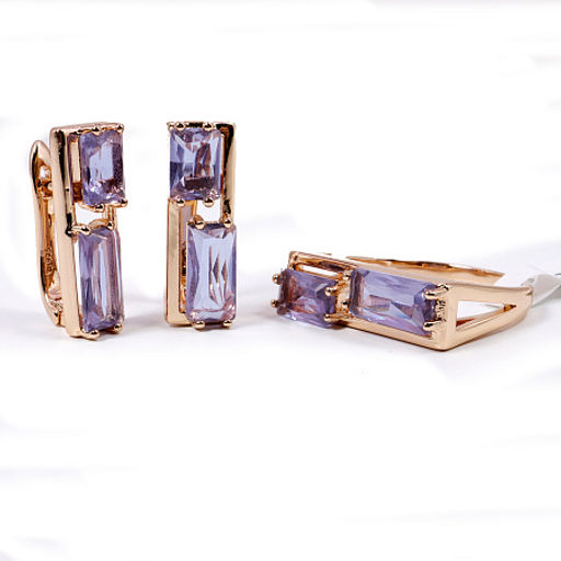 Комплект ювелирной бижутерии German Gold кольцо и серьги с Аметрином