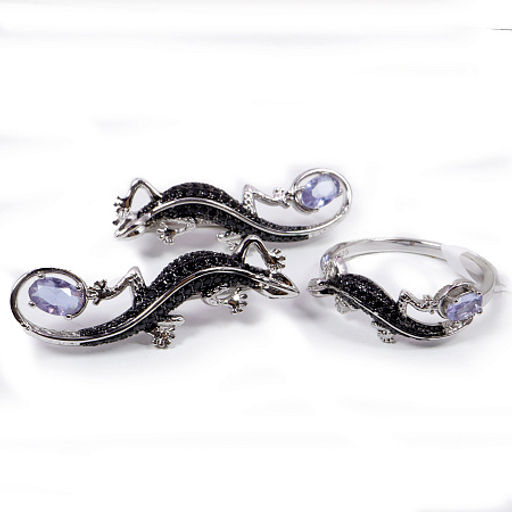 Комплект ювелирной бижутерии Silver Gold кольцо и серьги с Аметрином