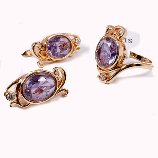 Комплект ювелирной бижутерии German Gold кольцо и серьги с Аметрином