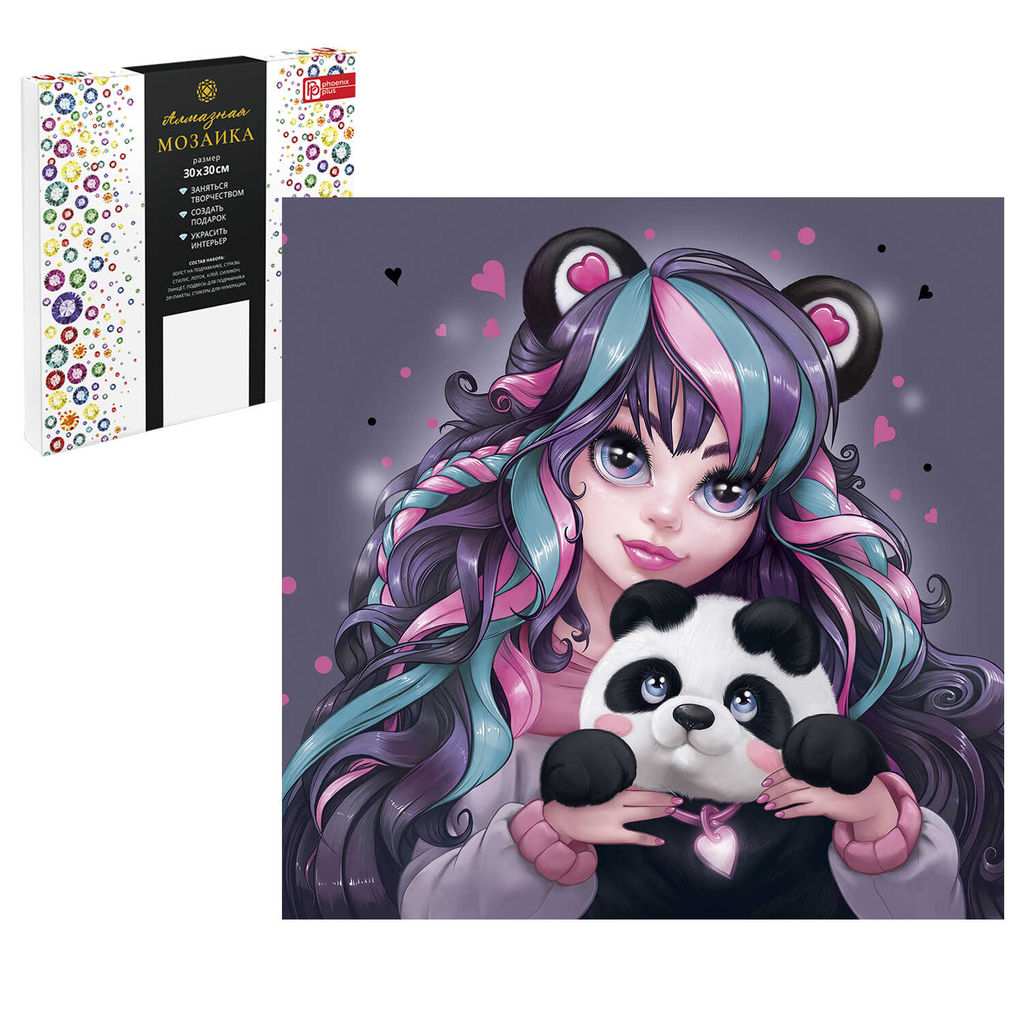 Алмазная мозаика арт. 68612 / 25 ДЕВУШКА С ПАНДОЙ, размер: 30*30 см, (18 цветов страз, холст на подр
