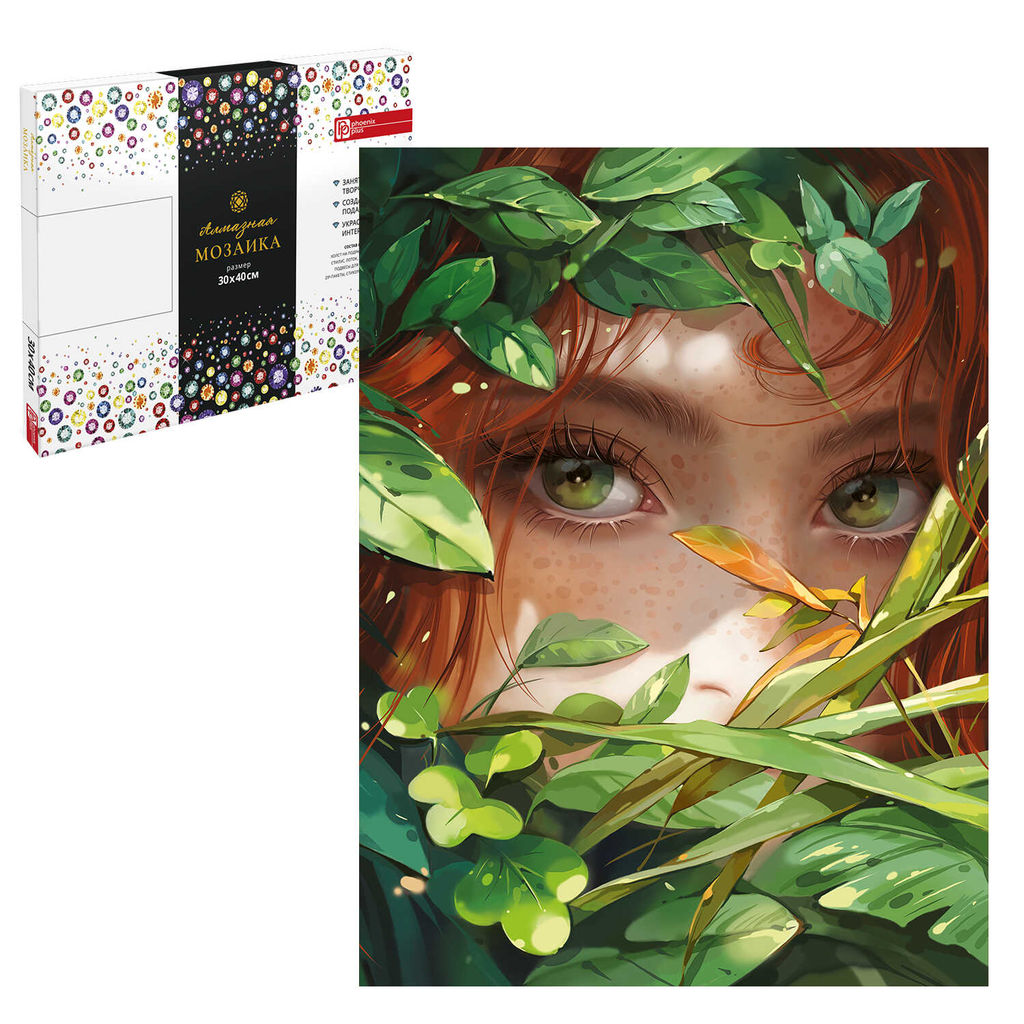 Алмазная мозаика арт. 68630 / 25 ДЕВУШКА В ЛИСТВЕ, размер: 30*40 см, (22 цветов страз, холст на подр