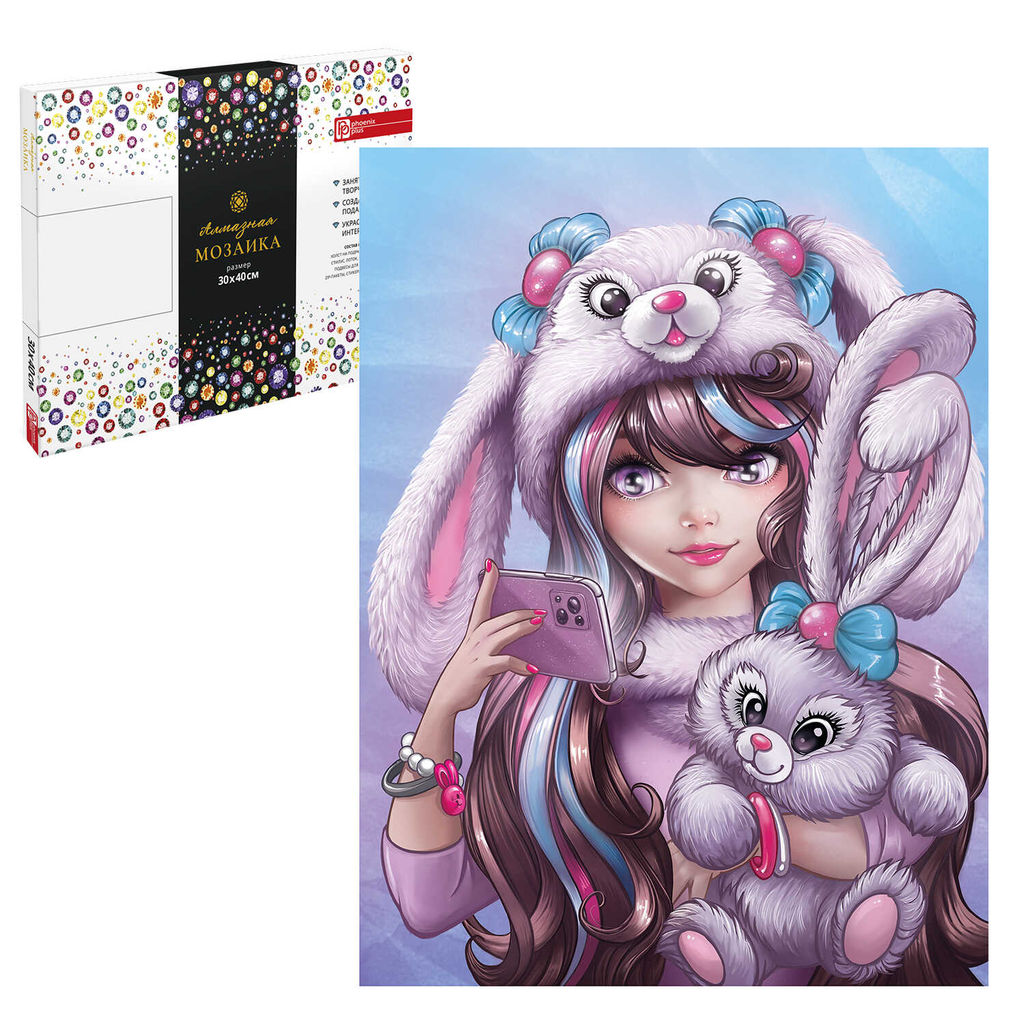 Алмазная мозаика арт. 68640 / 25 ДЕВУШКА С ЗАЙКОЙ, размер: 30*40 см, (23 цветов страз, холст на подр