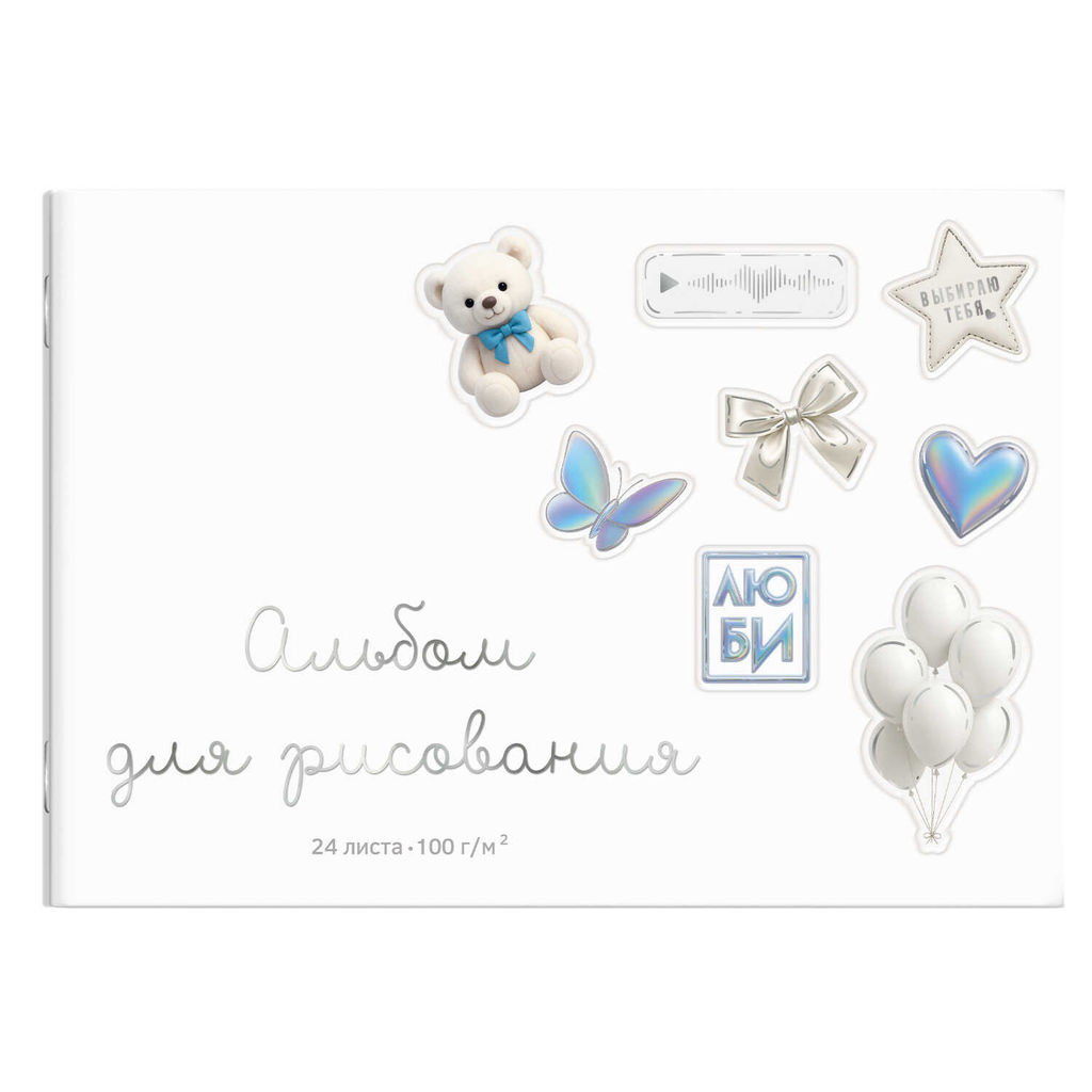 Альбом для рисования 24 л, арт. 73127 СТИКЕРЫ НА БЕЛОМ /А4 блок - белый офсет 100 г/м?, обложка - по