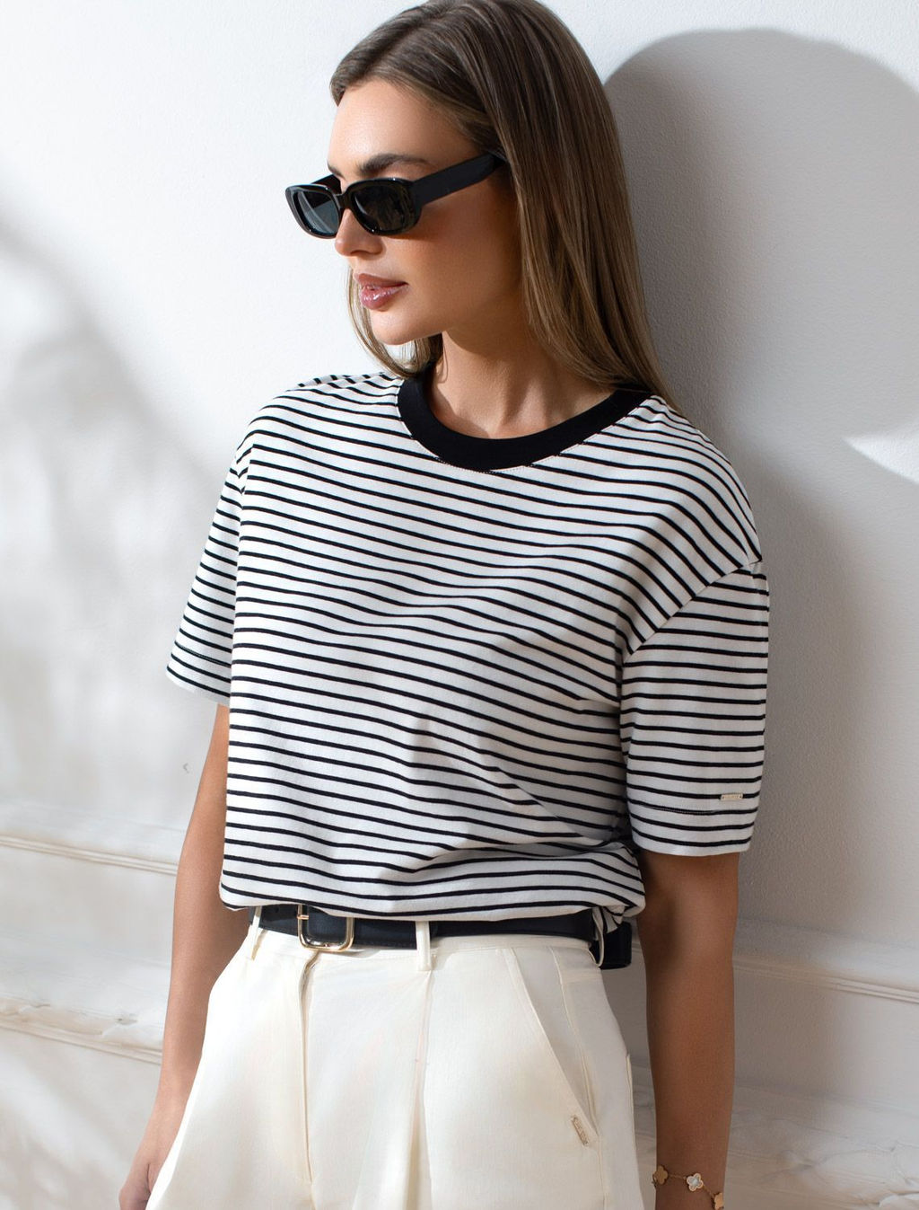 Свободная футболка в полоску из премиального хлопка с эластаном