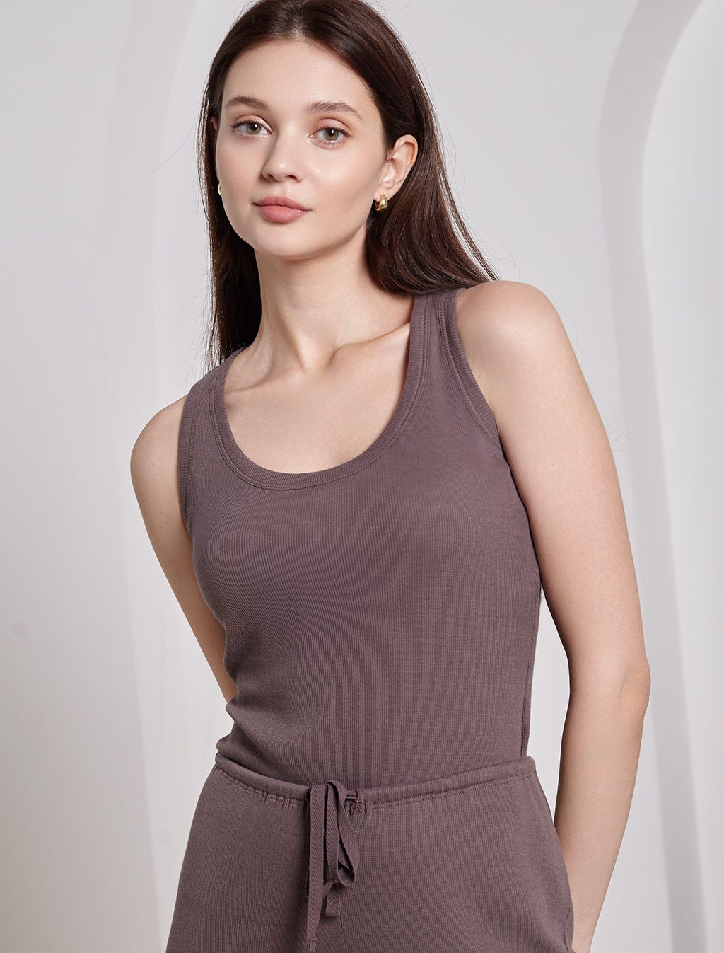Топ с круглым вырезом из фактурного трикотажа в рубчик