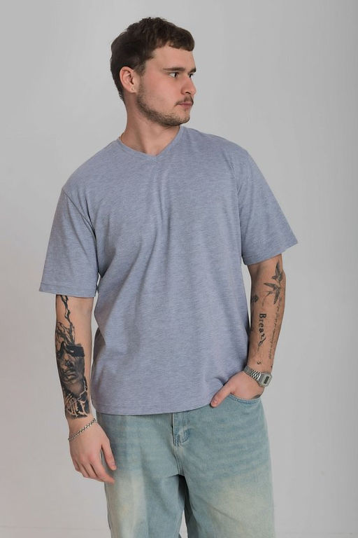 Футболка из кулирки с коротким рукавом и V-образной горловиной М125119с серый