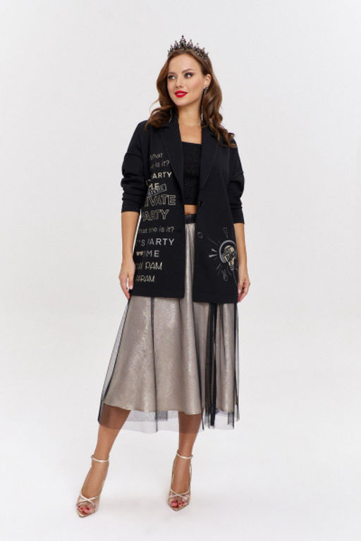 Бежевый расширенный мидиюбка из шелка и сетки с разрезом AVE RARA 3017 шампанское