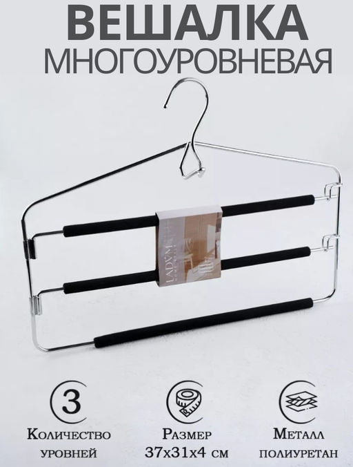 Плечики - вешалка для одежды LaDо́m Doux, 37×31 см, многоуровневая, антискользящее покрытие, чёрные