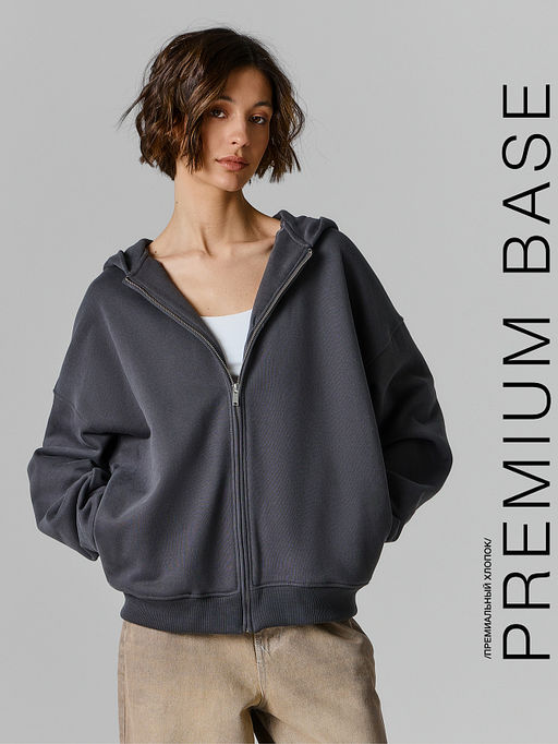 Толстовка женская серая на молнии