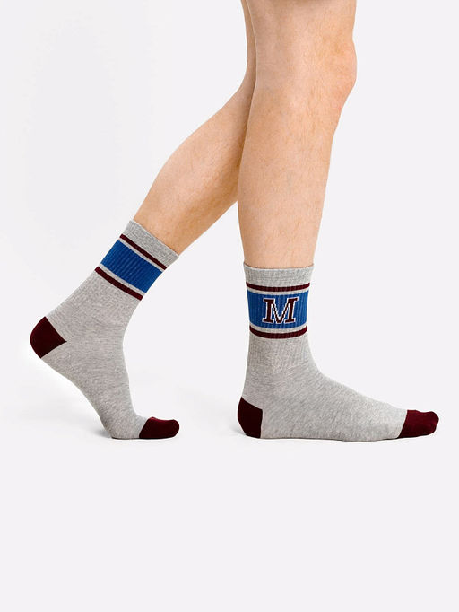 Цена за 5 пар! Носки мужские серые с рисунком в виде буквы "М"