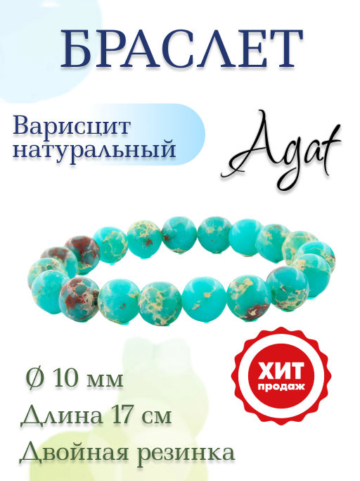 Варисцит зеленый (США), 8мм, браслет "Классика" длиной 17см