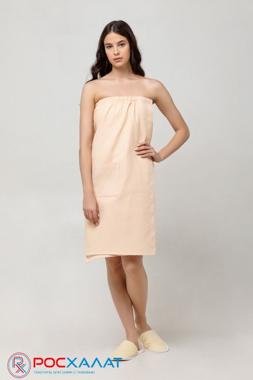 Женское вафельное парео на липучке нежно-персиковый В-09 (17)