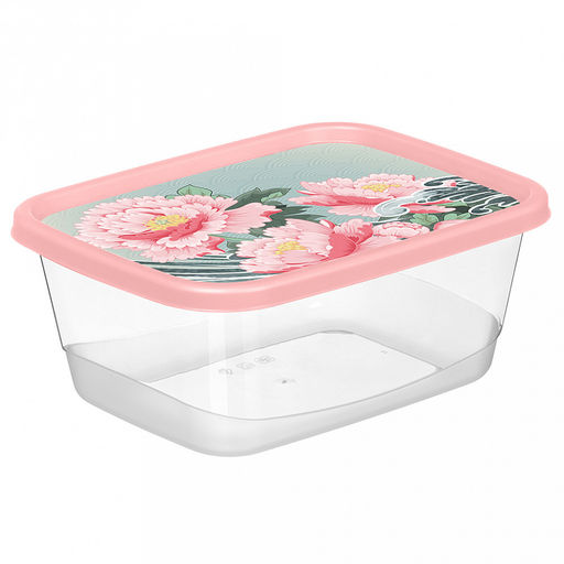 Контейнер для продуктов пластмассовый 0,5л, 13,8х10,6х5,6см, прямоугольный, с декором "Сад пионов", розовый (Россия)