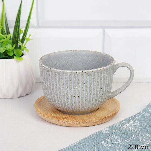Чайная пара 220 мл Вертикаль с бамбуковым блюдцем / GBT-103 /уп 80/