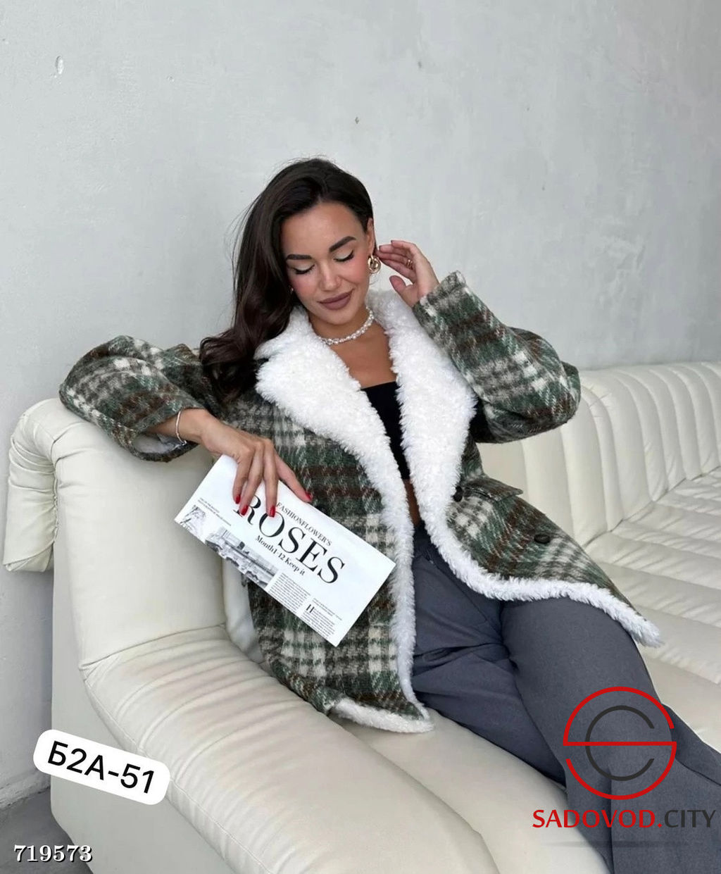 Женская куртка с мехом в клетку
