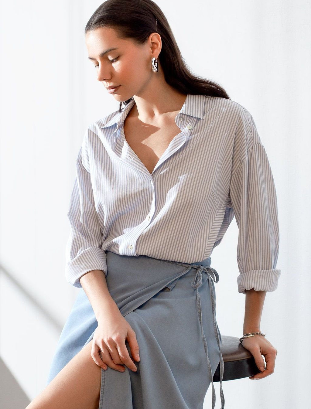 Блузка свободного силуэта в тонкую полоску из эластичного хлопка