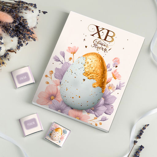 Набор 12 шоколадок "ХВ - Светлой Пасхи (яичко с золотом)"