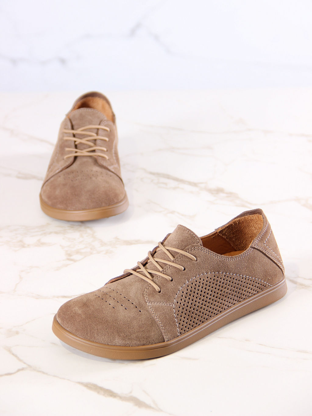 Туфли женские демисезонные с перфорацией 179.Р.астиbr.Серо-коричневая замша/Кожа