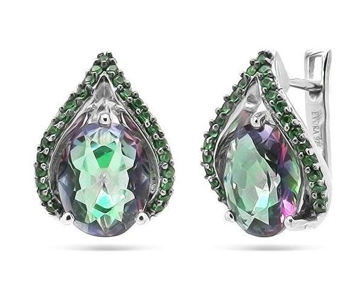Серьги из серебра мистик кварц, наноизумруд, Дени