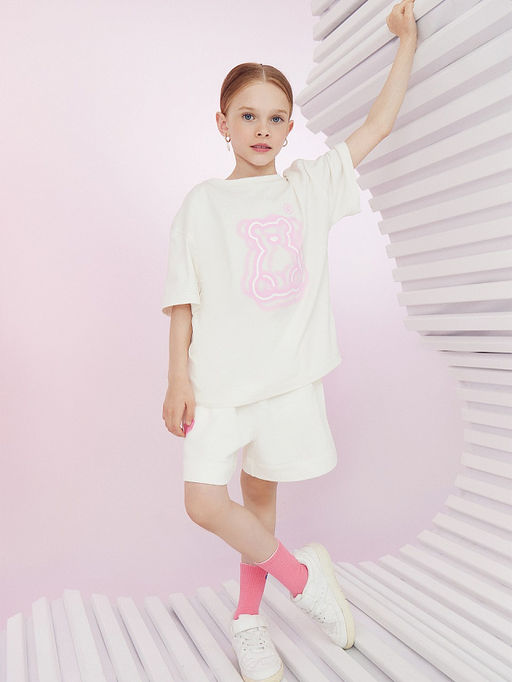 Футболка для девочек светло-молочная с печатью