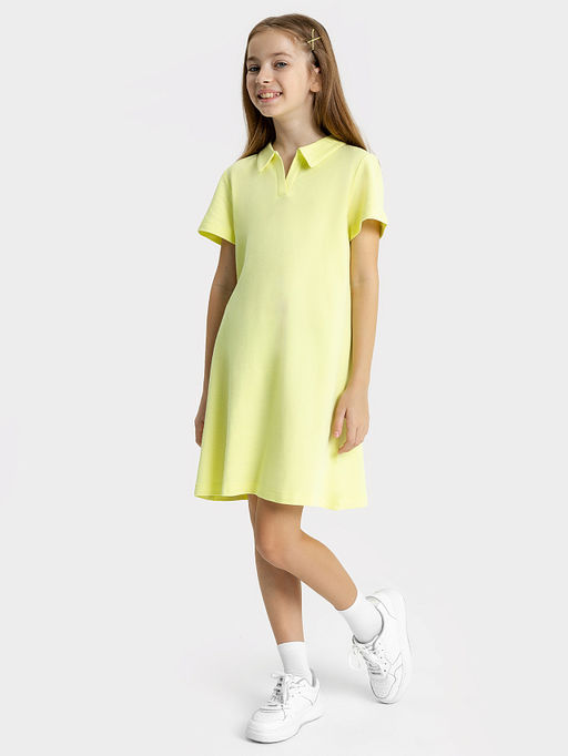 Прямое платье желтого цвета с воротником для девочек