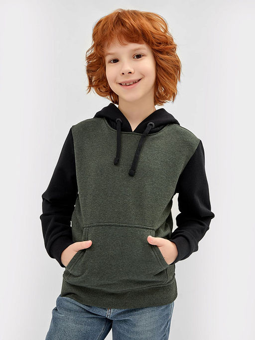 Худи для мальчиков темно-зеленое с принтом на спине, черные рукава и капюшон