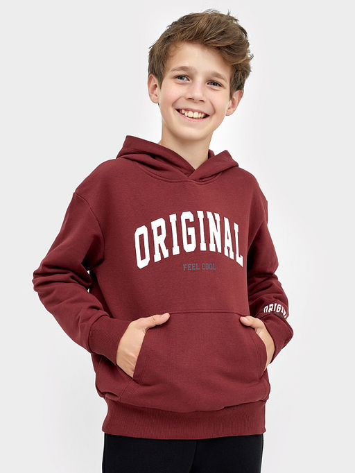 Стильное свободное худи пыльно-бордового цвета для мальчиков