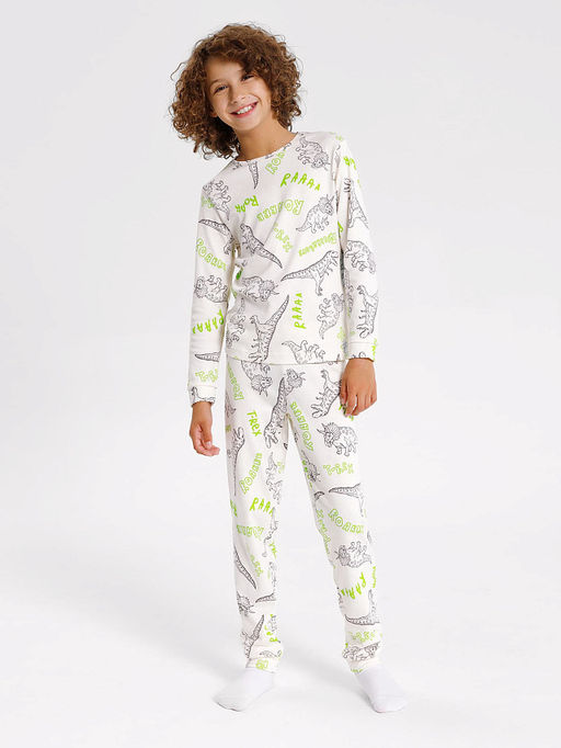 Комплект для мальчиков (джемпер, брюки) молочный с динозаврами